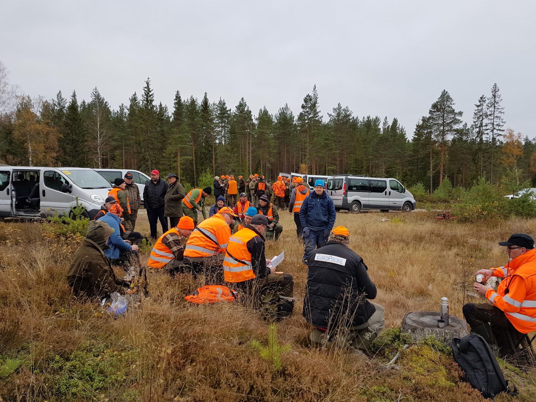 Igår var vi några från fiskeklubben som hjälpte till med Bofors årliga älgjakt uppe på skjutfälten i Kilsbergen. Vi var 24 personer som hjälpte till i de 3 dreven för dagen och de var nästan lika många skyttar som väntade på sina pass i skogen. Första drevet tror jag inte det fanns en älg på möjligen några vildsvin som for förbi i högsta fart. Vid andra drevet stod det en älg och stirra redan när vi klev ur bilen men den luffsade iväg åt rätt håll för sitt eget bästa. Det drevet var det mest krävande då jag fick min linje längs en bergsluttning i nästan 3km, riktigt snårig skog där inte många personer satt sin fot senaste 50 åren. En ko passerade en av jägarna men han fick inte tillräkligt med tid att avgöra om hon var ensam eller med en eftersläntrande kalv så hon klarade sig. Även en familj med vildsvin han undan då jägaren redan gjort patron ur när de kom farande. Efter de 2 passen blev det lunch bestående av grillkorv kaffe och läsk medans jägarna spisade något lyxigare mat inne i en stuga när vi satt ute vid eldstaden och väntade. Drev nr. 3 som låg längs några sjöar gick desstå bättre då det hördes skott ganska tidigt på sträckan sen small det med jämna mellanrum innan boghalt. Det var det blötaste passet för dagen med många sugande mossar som kändes i benen. Mycket viltspår längs kärren och riktig trollskog på sina ställen innan vi nådde jägarna. De summerade 11 synliga älgar varav de sköt 5 av dem även här var det mycket grisar på sträckan. Det var flera drevkarar som stötte på älg men själv såg jag bara 3 orrar en död sork och 2 älgflugor så jag måste vara älgarna värsta fasa när jag kommer trumpetandes i skogen. Nästa lördag är det dags igen för 3 nya pass i skogen hoppas bara att jag hinner bli helt frisk från förkylningen tills dess, vi har ju även avslutning på trollingtouren på Råsvalen den söndagen.